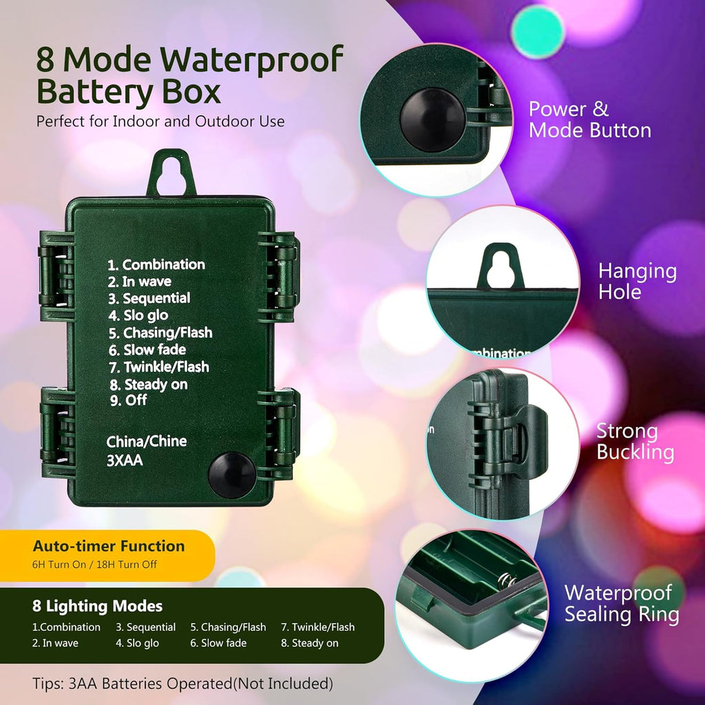 • Battery Operated: Powered by 3 AA batteries (not included), these lights are portable and safe to touch, even after extended use.