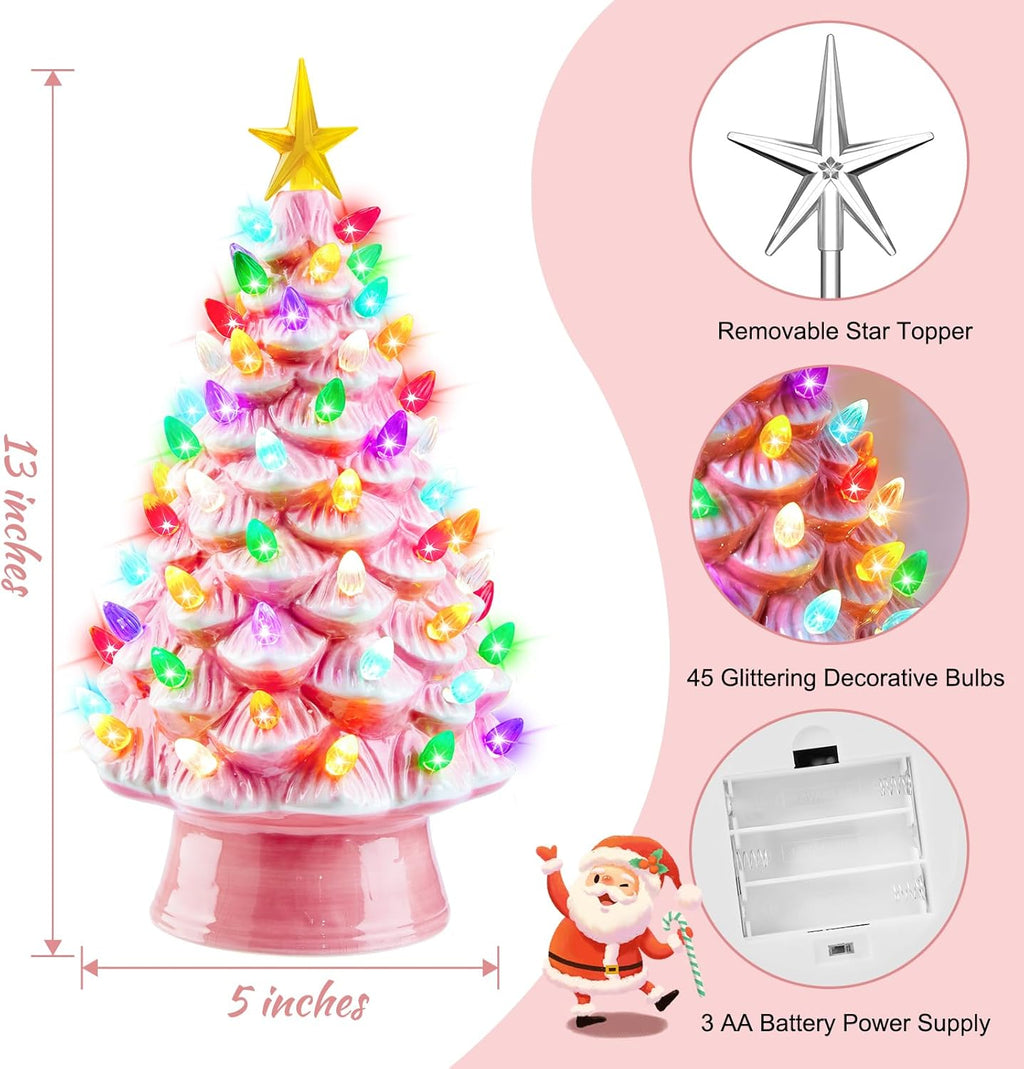• Adorable Design: This 13-inch ceramic tree features multicolored LED lights and a star, perfect for adding charm to your tabletop during the holiday season.