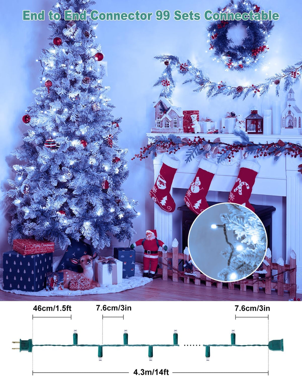 [Connectable Up to 90 Sets] Christmas tree lights can be connected end-to-end up to 90 light strings (MAX 5000 LED), which meets your needs of various venue decorations perfectly. Connect our different colored LED strings to design vibrant scenes for any setting. With connectable plugs, you can easily extend the lights to your desired length, making them suitable for commercial spaces, campuses, home gardens, and comprehensive indoor.