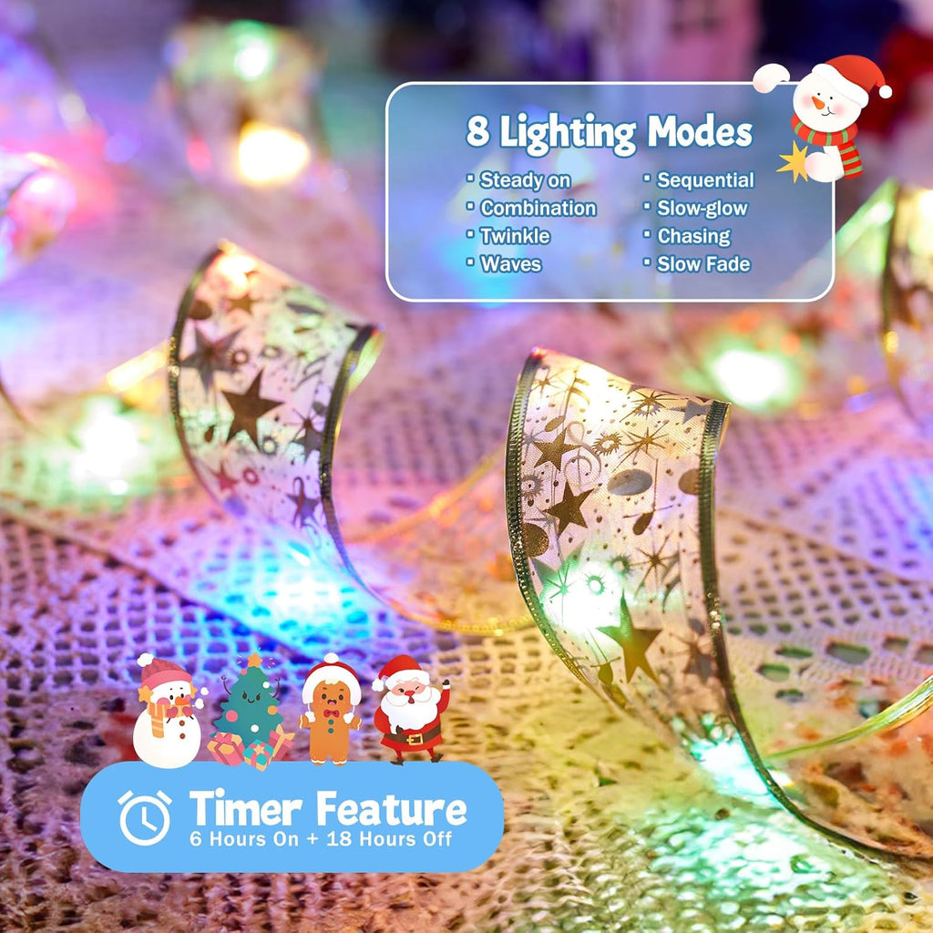 • Cheerful Design: Each 33 ft string light features 100 multi-color LEDs on a 2-inch gold ribbon, adding a festive touch to your Christmas tree.