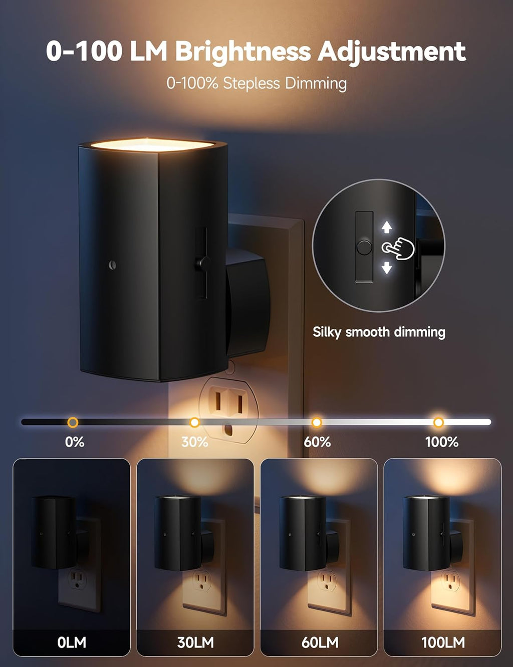 ใ๐-๐๐๐๐๐ ๐๐ญ๐๐ฉ๐ฅ๐๐ฌ๐ฌ ๐๐ข๐ฆ๐ฆ๐ข๐ง๐ ใ This night lights features a smooth, stepless dimming light stripโbrightness adjusts from 0 to 100 lumens, so it fits every scenario. Whether you want bright light in the hallway or soft, cozy light in the bedroom, it can meet your needs and make you feel at ease at night.