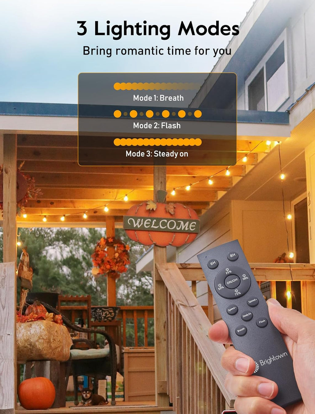 • Multifunctional Remote Control: Adjust brightness levels (25%, 50%, 75%, 100%) and light speed, set timers for 6, 8, or 10 hours, and choose from 3 lighting effects (steady on, breath, flash) using the remote.