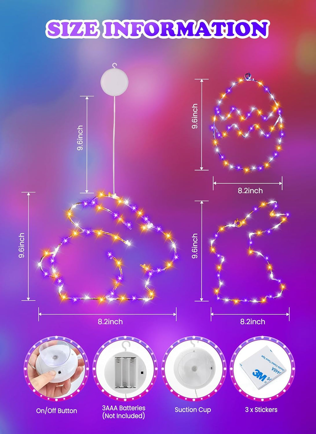 • Battery Operated Easter Decor Lights: Requires 3 AAA batteries, low consumption, and safe to use.