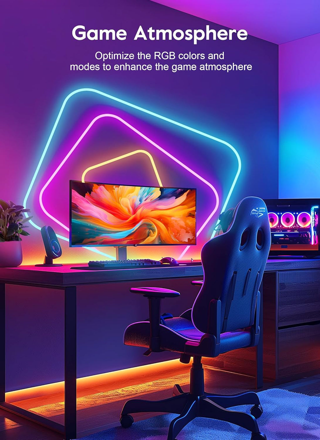 • Music Sync: Built-in microphone detects music and audio, syncing lights for an exciting atmosphere during gaming or leisure time.