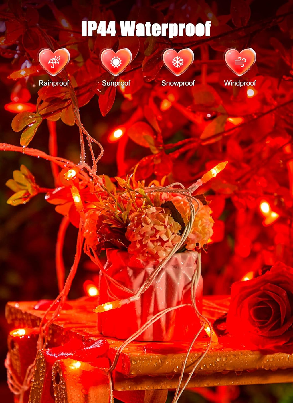 39FT Red LED Mini String Lights, USB Operated, Waterproof