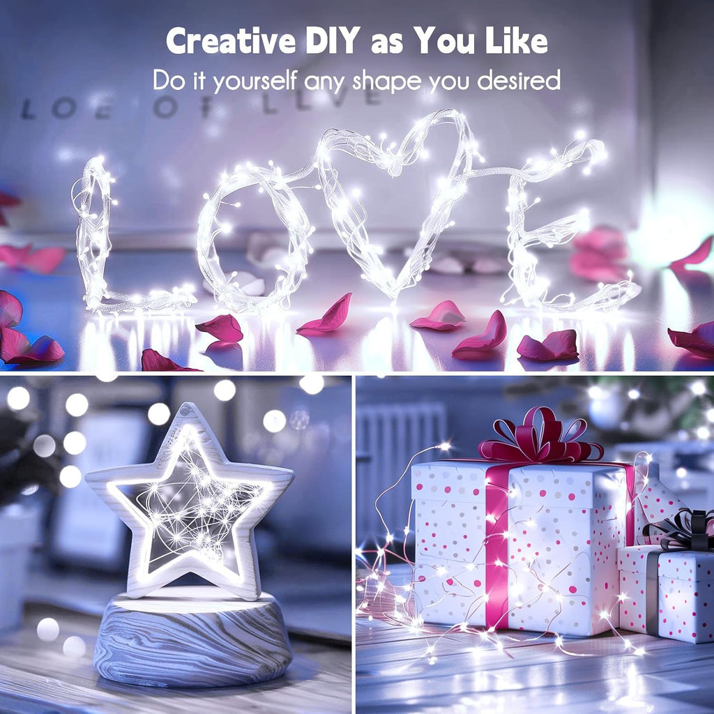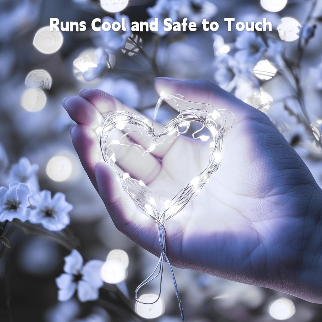 • Flexible String Lights: Made of soft, bendable silver wire. Easily twist into any shape or wrap around plants, flowers, trees, branches, garlands, walls, photos, shelves, jars, crafts, or furniture. Shape it as you like.