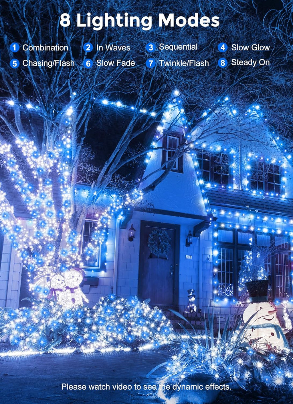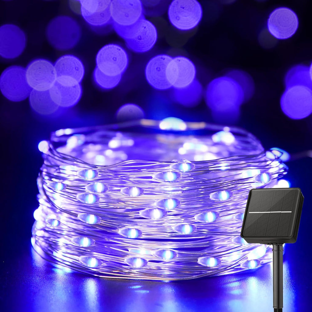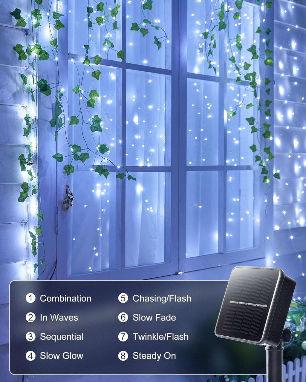 • Solar Lights Outdoor: Each set includes 33 feet of outdoor tree lights with 100 bright LEDs. The solar fairy lights emit a blue and white glow, perfect for your porch, garden, yard, patio, or balcony.