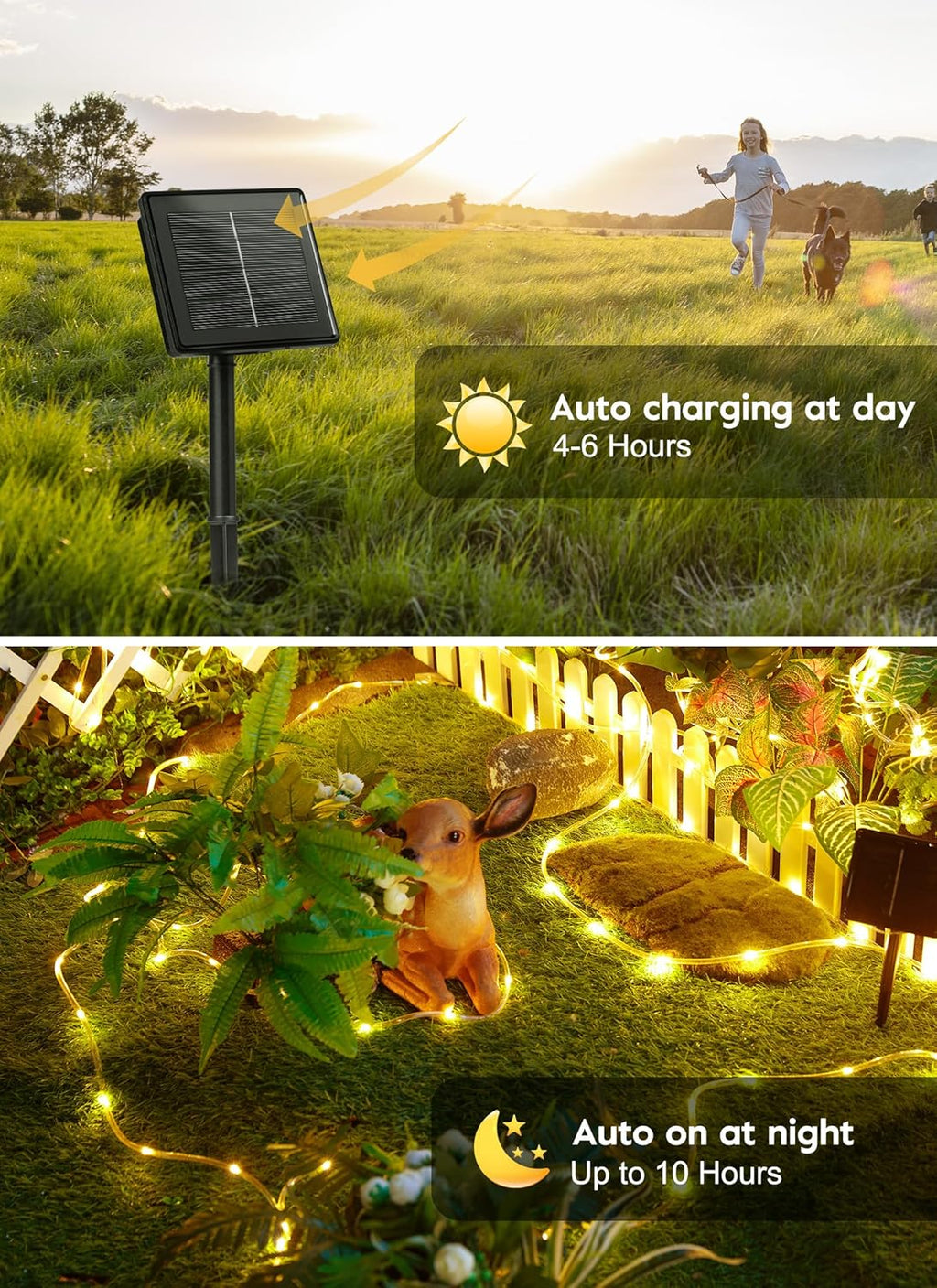 High Efficiency Solar Power: Features a 120-degree adjustable monocrystalline silicon solar panel with a 1200mAh rechargeable battery.