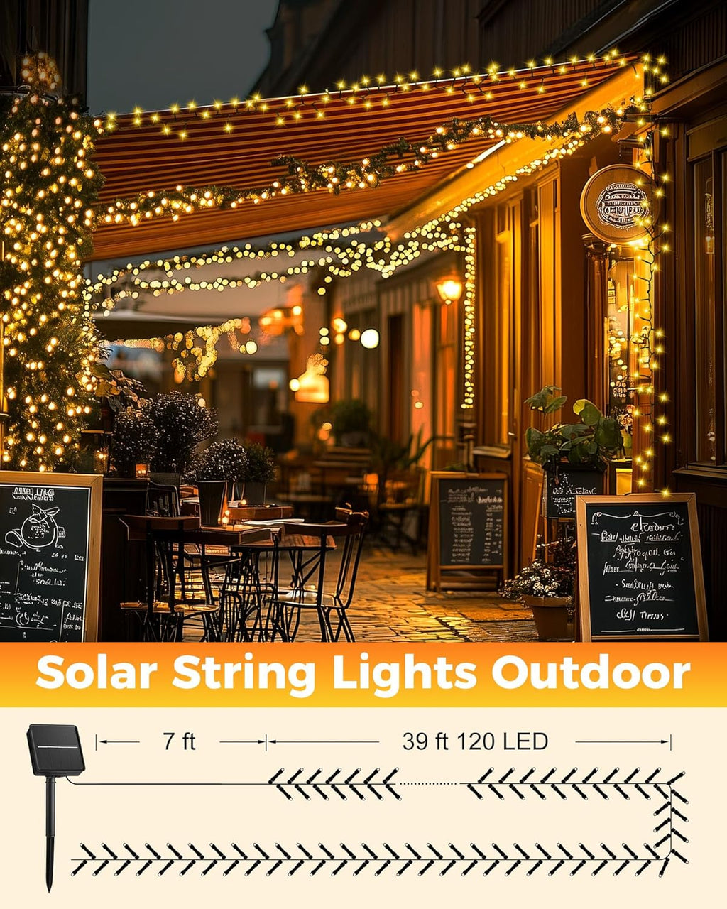 • 2 Pack Solar Powered String Lights: These solar lights can be used outdoors without being restricted to an outlet. Each string is 39ft long with a 7ft lead wire, totaling 46ft, making them easy to install wherever decoration is needed.
