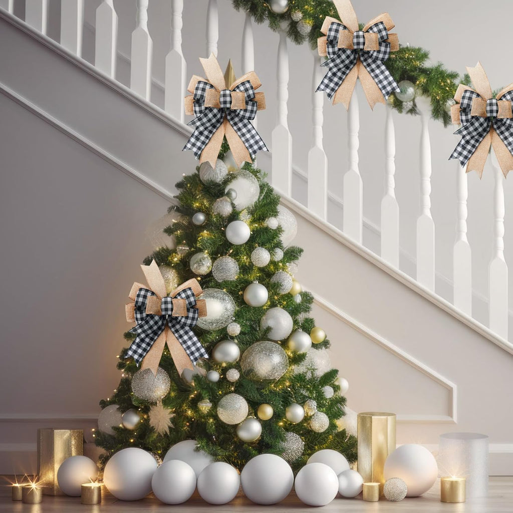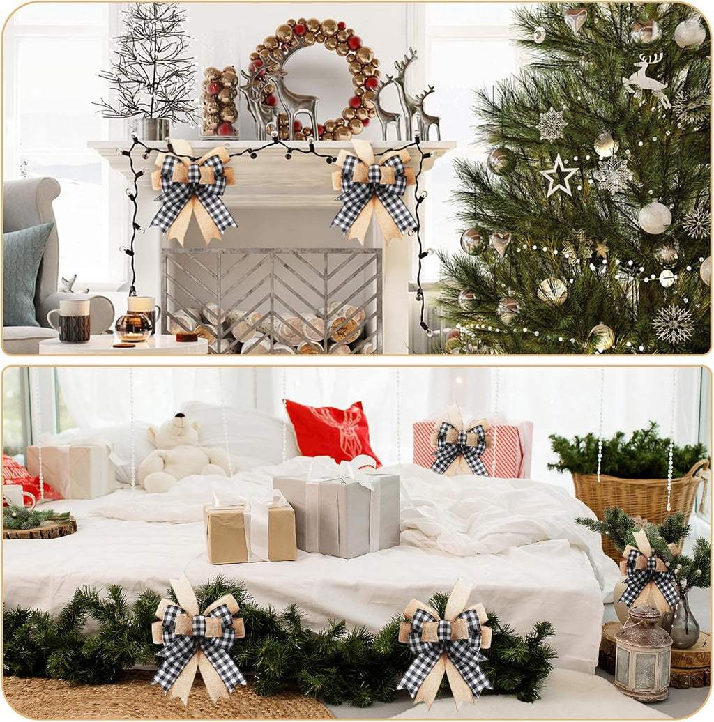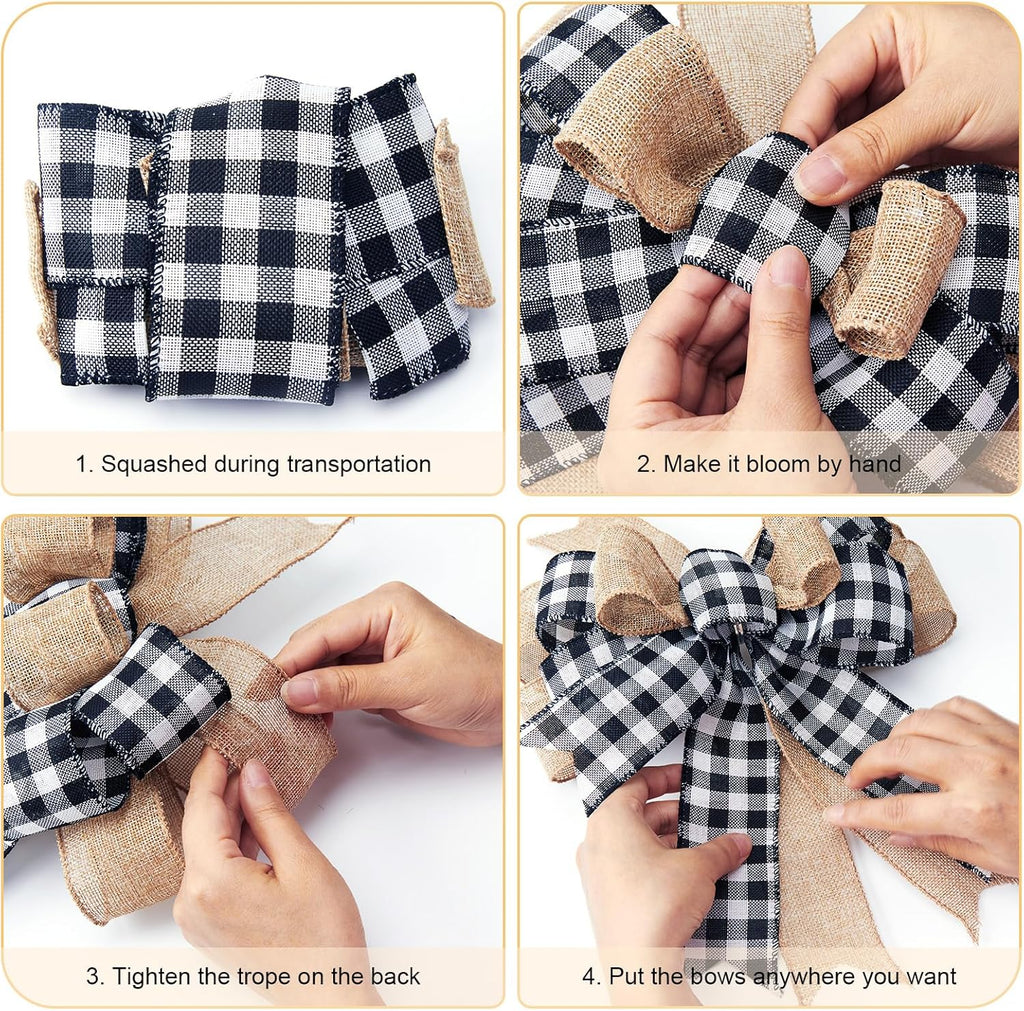 Buffalo Plaid Burlap Bows - 14" Rustic Decor (2 Pack)