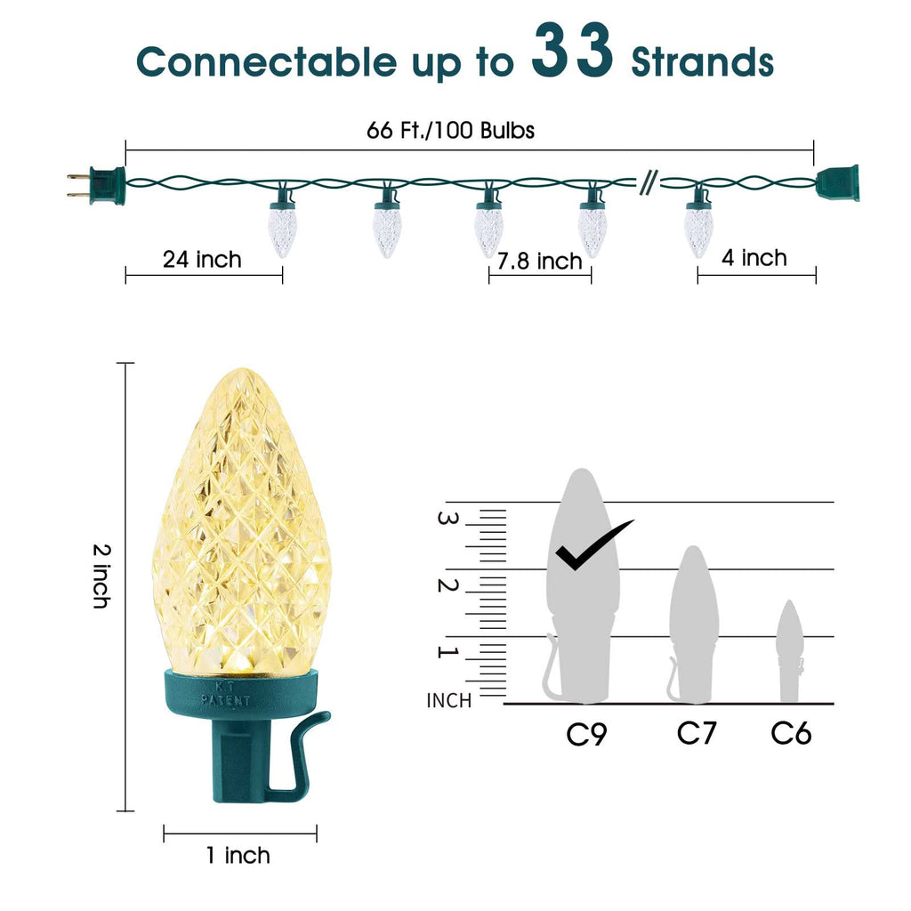 Options: 66 Feet / 100 LED / Pure White / All-in-one Clip
