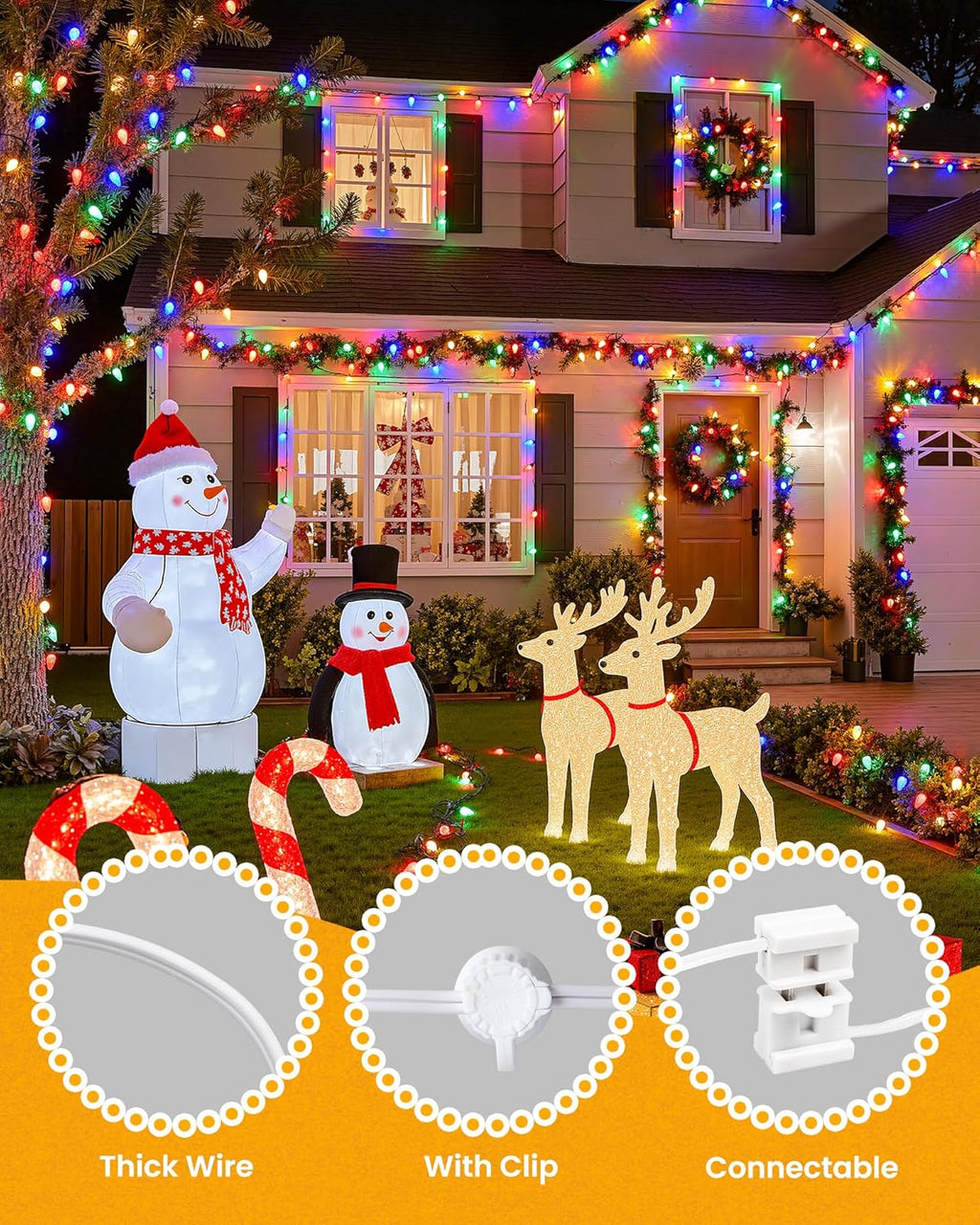【Easy Customization】Comes with 10pcs of male and 10pcs of female Christmas light plugs, you can easily cut the Christmas stringer to fit any space, choosing the length you need to customize your lighting decoration. DIY your indoor and outdoor lighting decorations to add a festive Christmas atmosphere to your home.