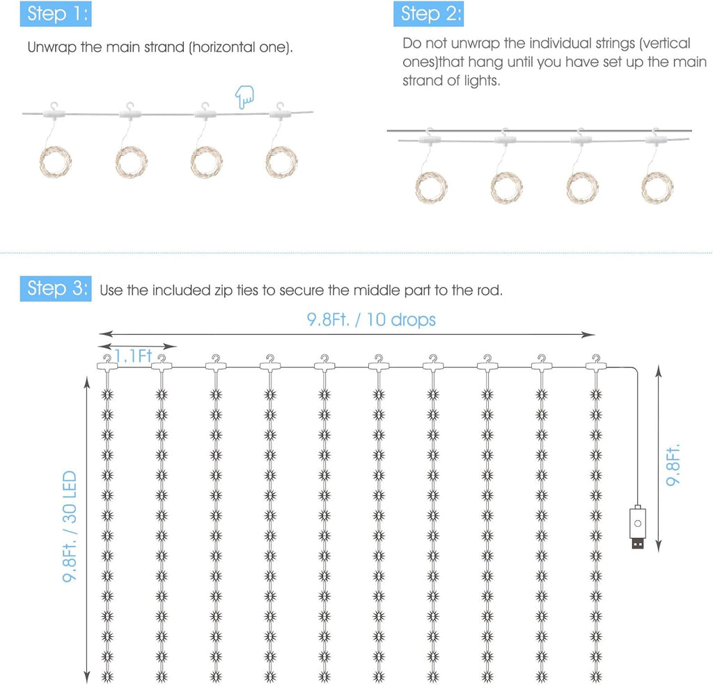 Curtain Lights - 300 LED, Dimmable, Remote & Timer, USB Powered
