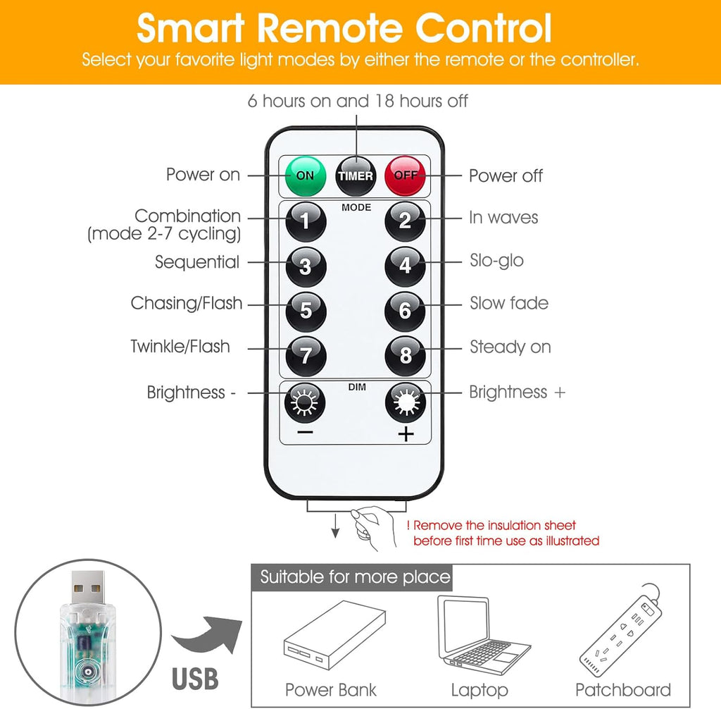 • 8 Modes & Memory Function: Offers combination, waves, sequential, slo-glo, chasing, slow fade, twinkle, and steady-on modes with memory function.