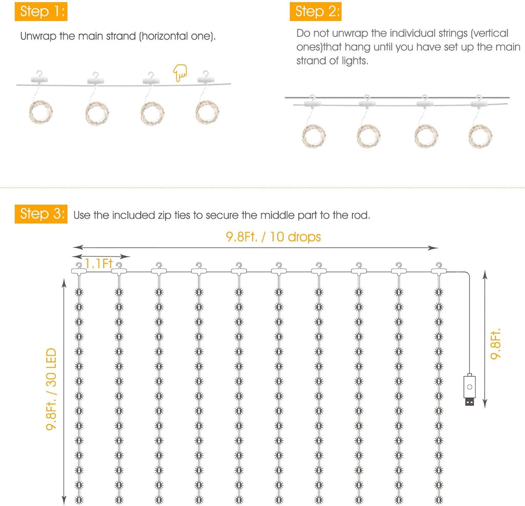 Curtain Lights - 300 LED, Dimmable, Remote & Timer, USB Powered