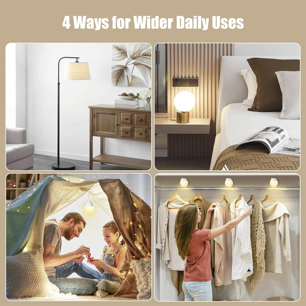 • Rechargeable Light Bulb with Detachable Magnetic Base: This bulb features a 2000mAh battery, ideal for areas without hardwiring, such as wall sconces and lamps. The magnetic base makes installation and charging easy.