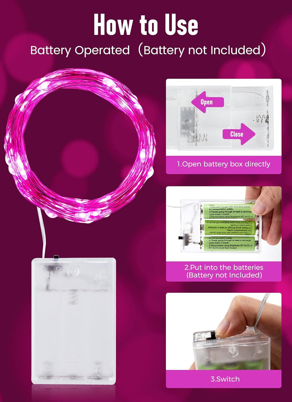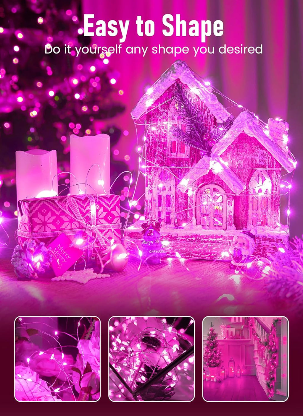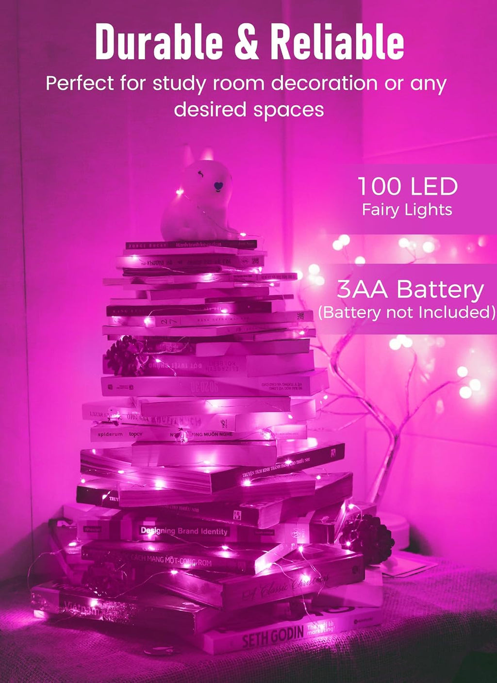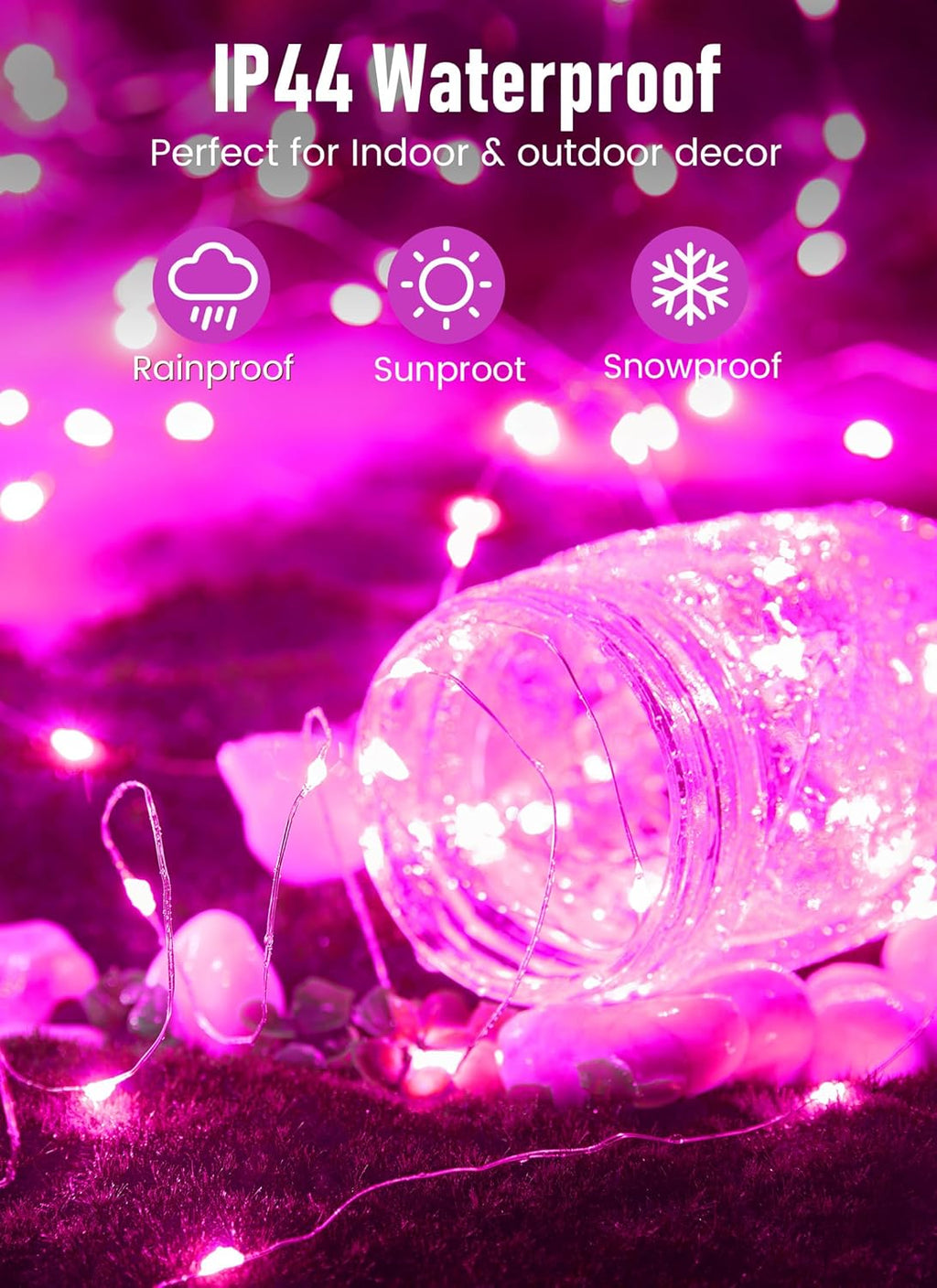 Fairy Lights - 33 FT, 100 LED, Pink, Waterproof, Battery Operated