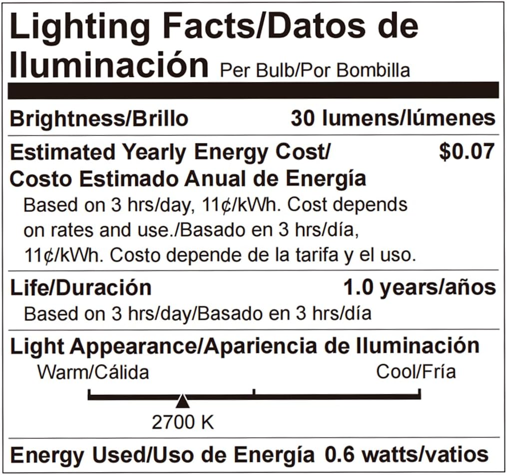1W 120V per bulb, C7 / E12 candelabra socket base