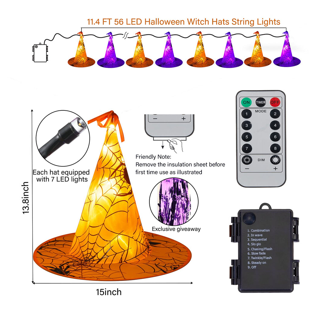 Halloween Battery Operated LED Witch Hat Lights with Remote
