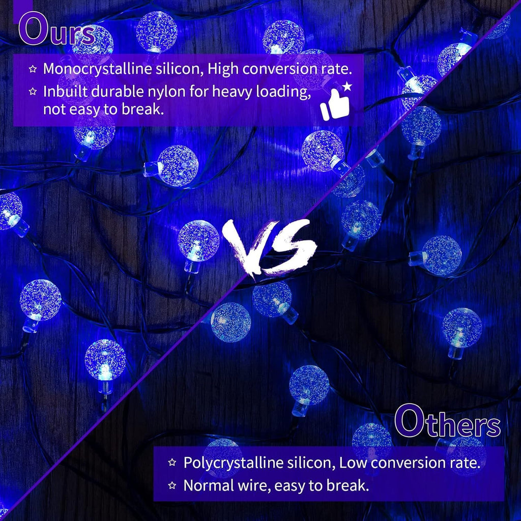 Purple Solar Halloween Lights, 36FT 60 LED Crystal Globe String Lights