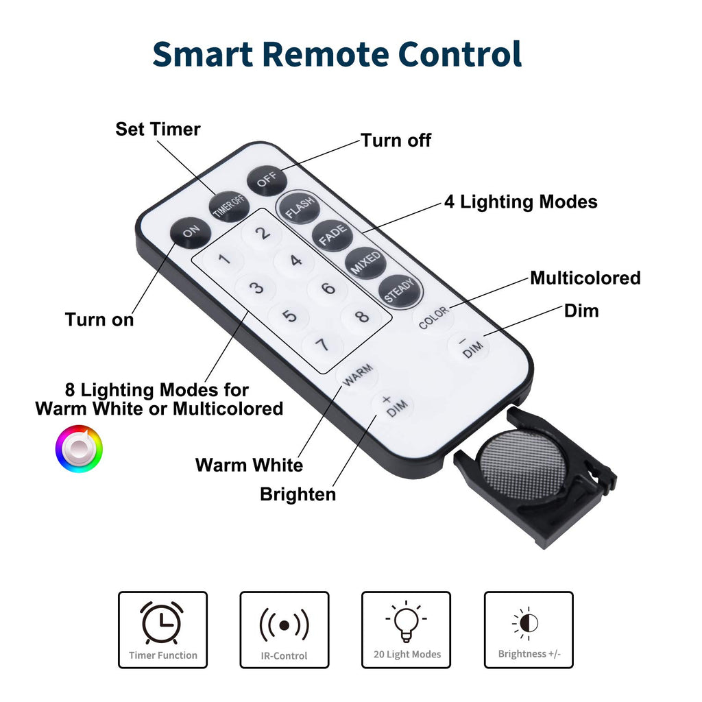 • 20 lighting modes: 8 lighting modes respectively for warm white and multicolor