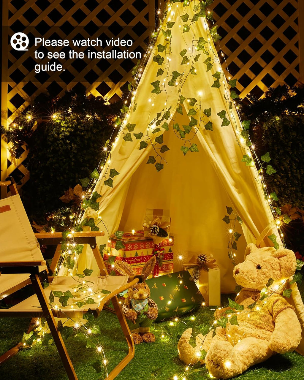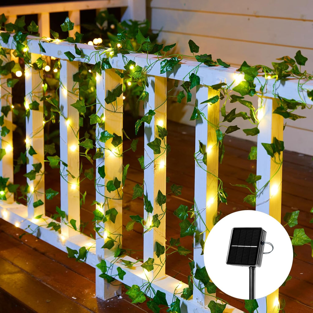 • Solar Powered Fairy Lights: These string lights feature 33 feet of solar-powered fairy lights paired with 5 packs of 6.56 feet ivy, perfect for decorating windows, fences, tents, patios, and more.