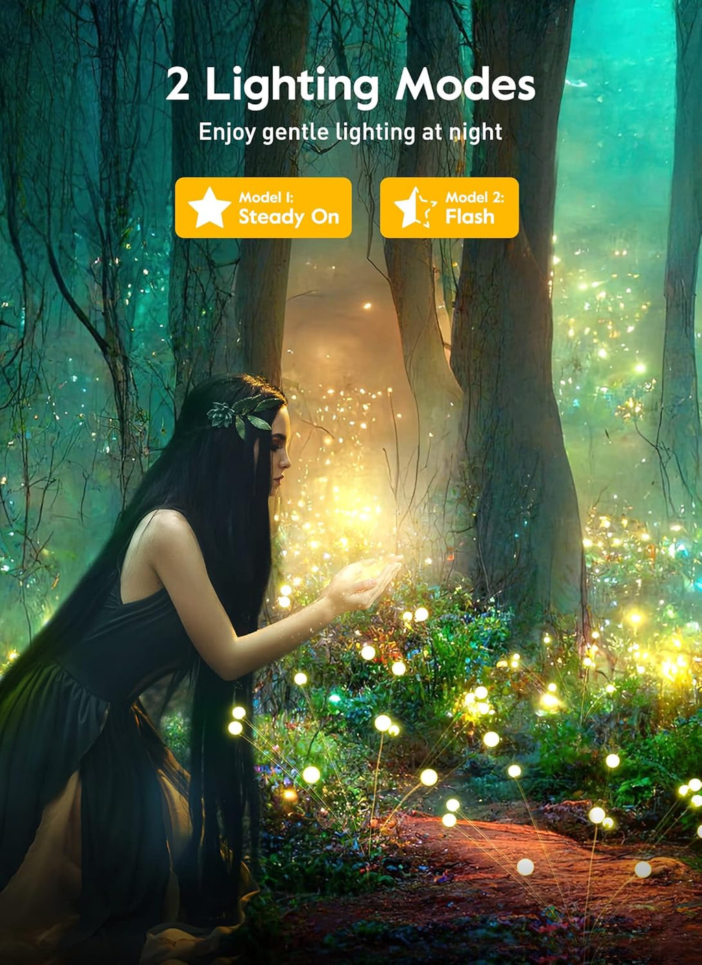 • Swaying with Wind: These solar-powered firefly lights sway with the breeze, creating a magical effect in your garden. The flexible stems allow for easy movement without clumping together.