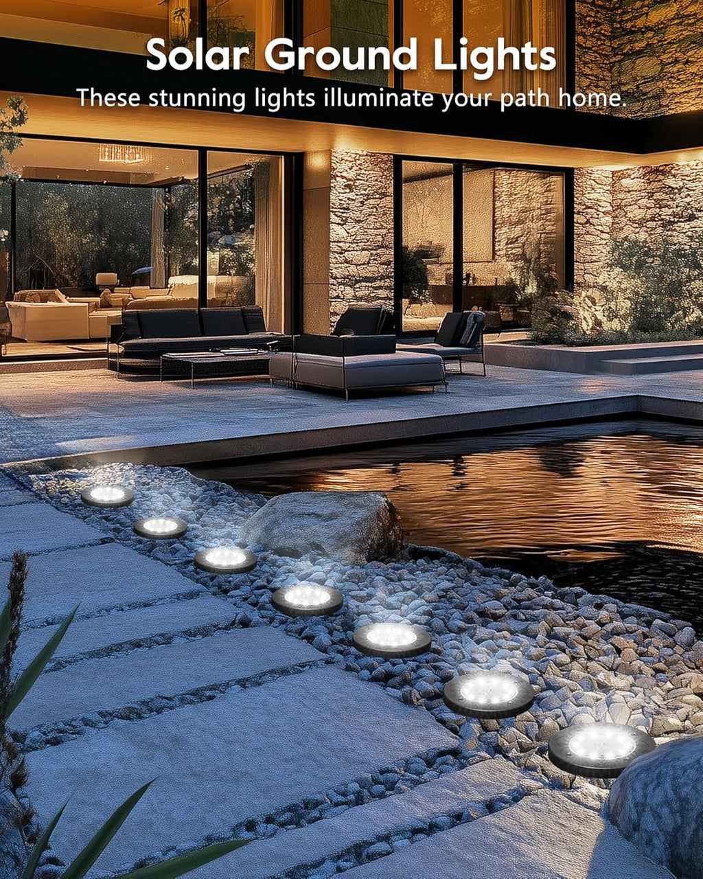 • 12 Pack Solar Landscape Lights: Each light features 10 bright LEDs, creating a safe and welcoming environment.