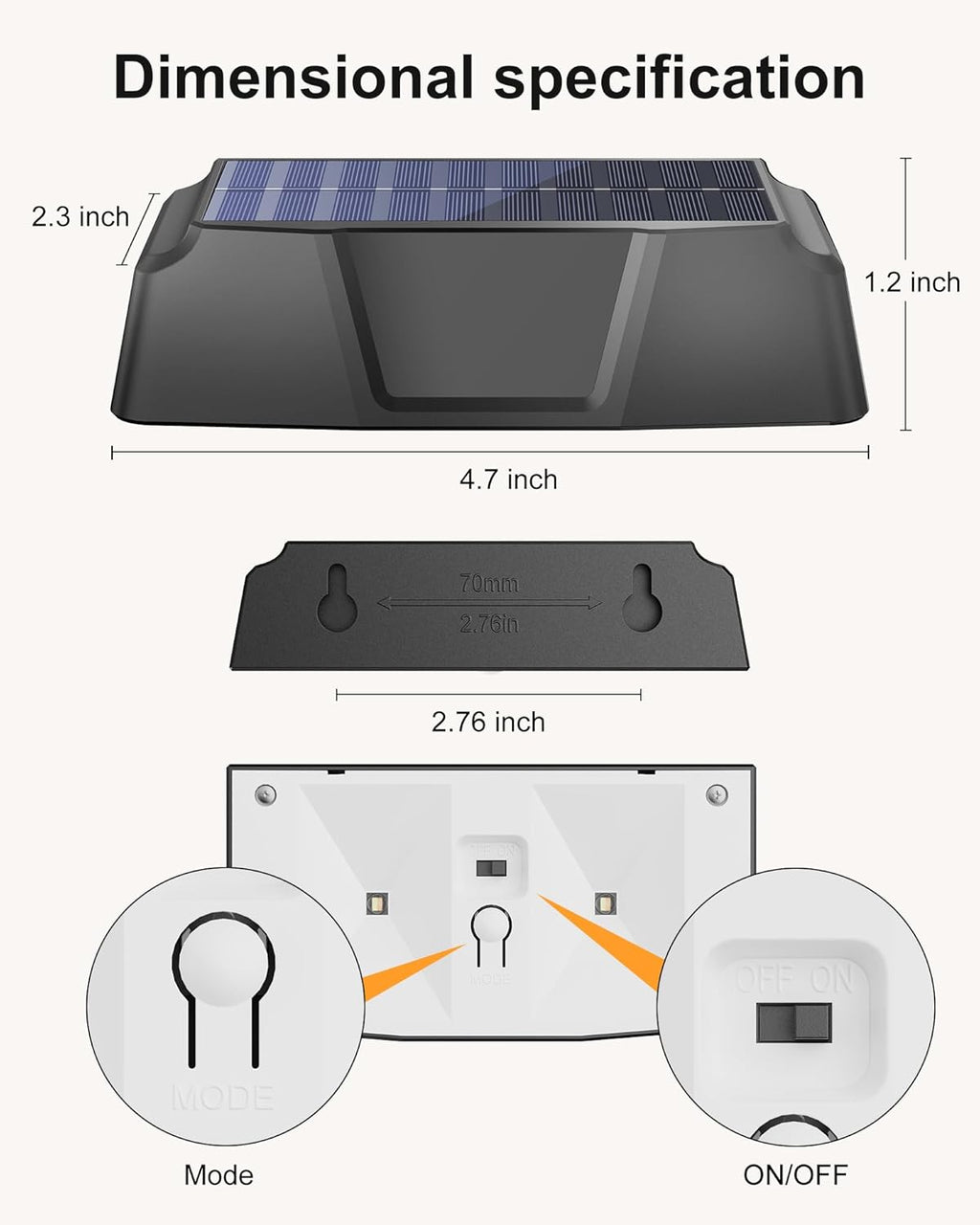 • Waterproof & Durable: Made with high-quality ABS housing and IP65 waterproof, these lights withstand harsh outdoor weather, providing ample lighting for paths, decks, and more.
