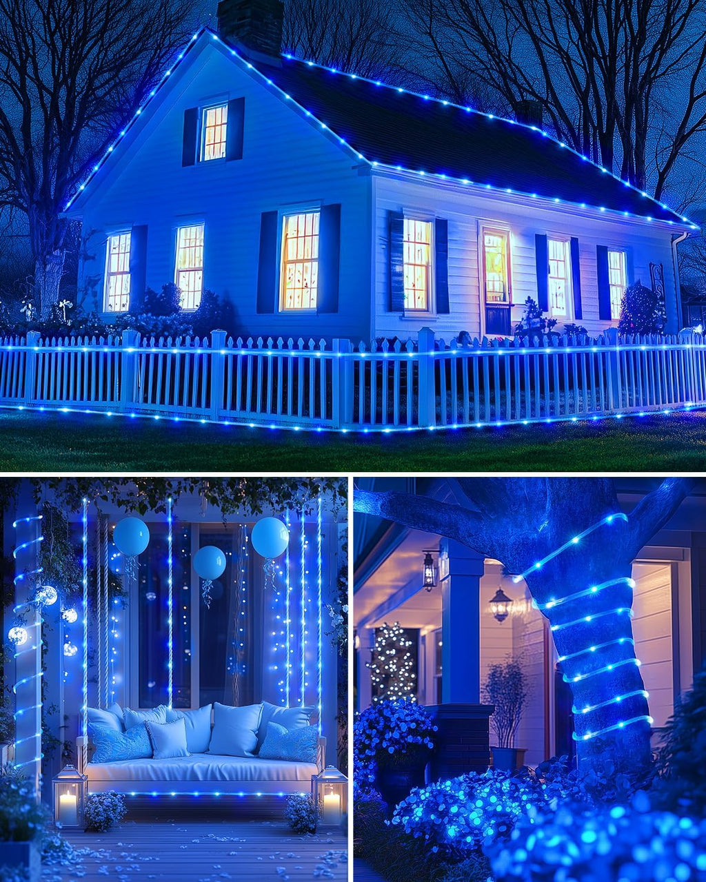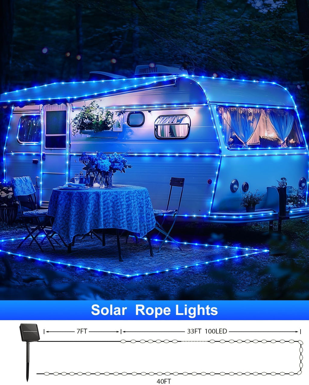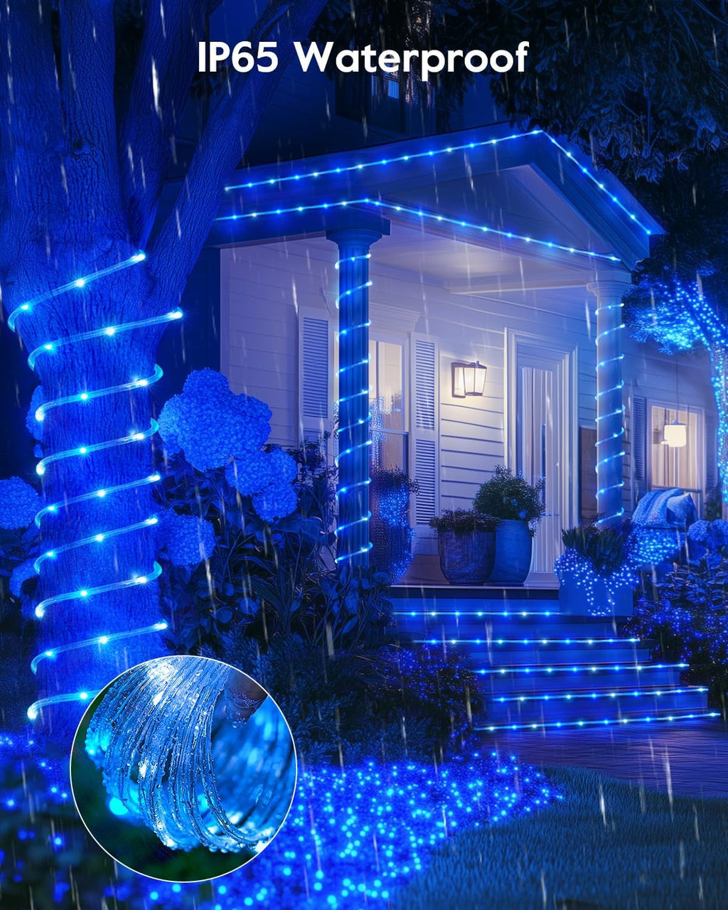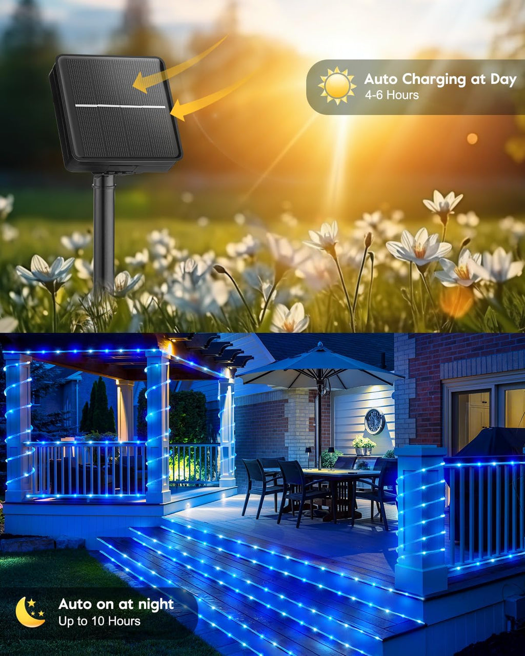 Solar Rope Lights - 39 FT, 100 LED, Blue & White, Waterproof