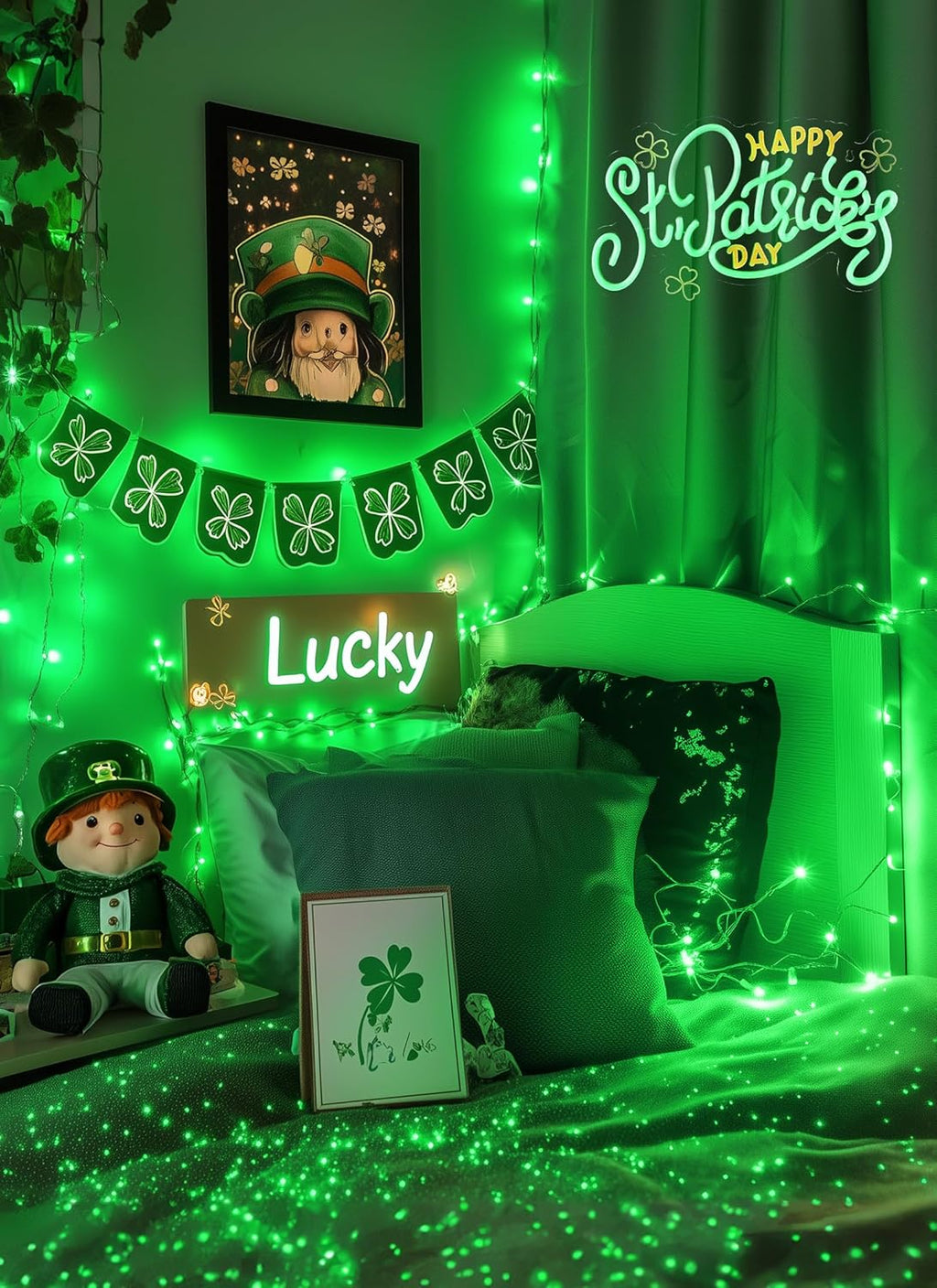 • Creative Mini Green Lights: These 39ft string lights feature 100 green LEDs on a white wire, perfect for St. Patrick's Day and Christmas decor.