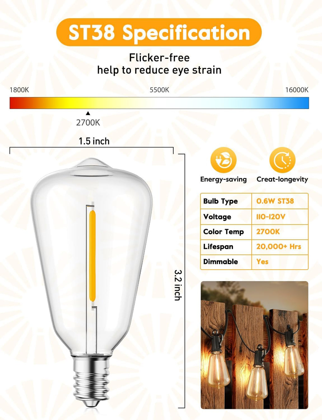 ST38 LED Bulbs - 10 Pack, Warm White, Dimmable, E12/C7 Base